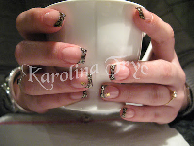 SCULPTED UV GEL NAILS - Brown French+gold glitter ...